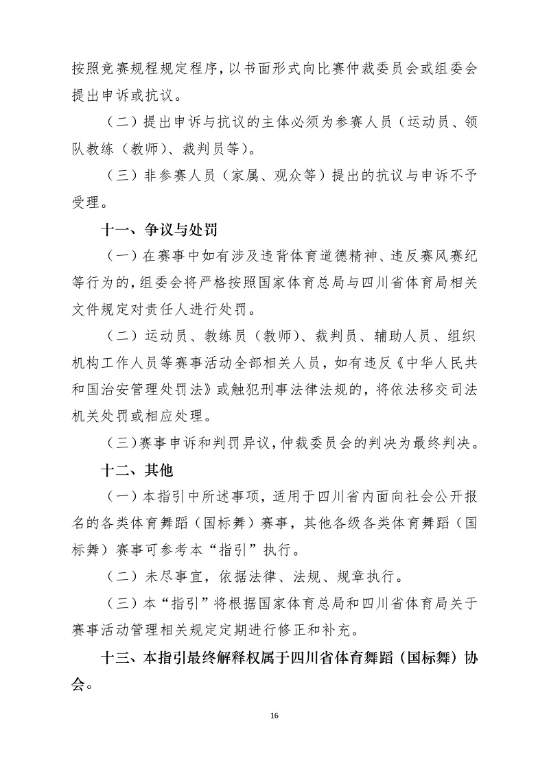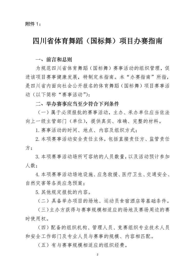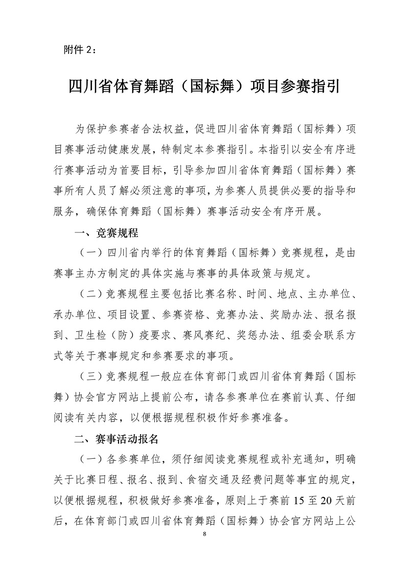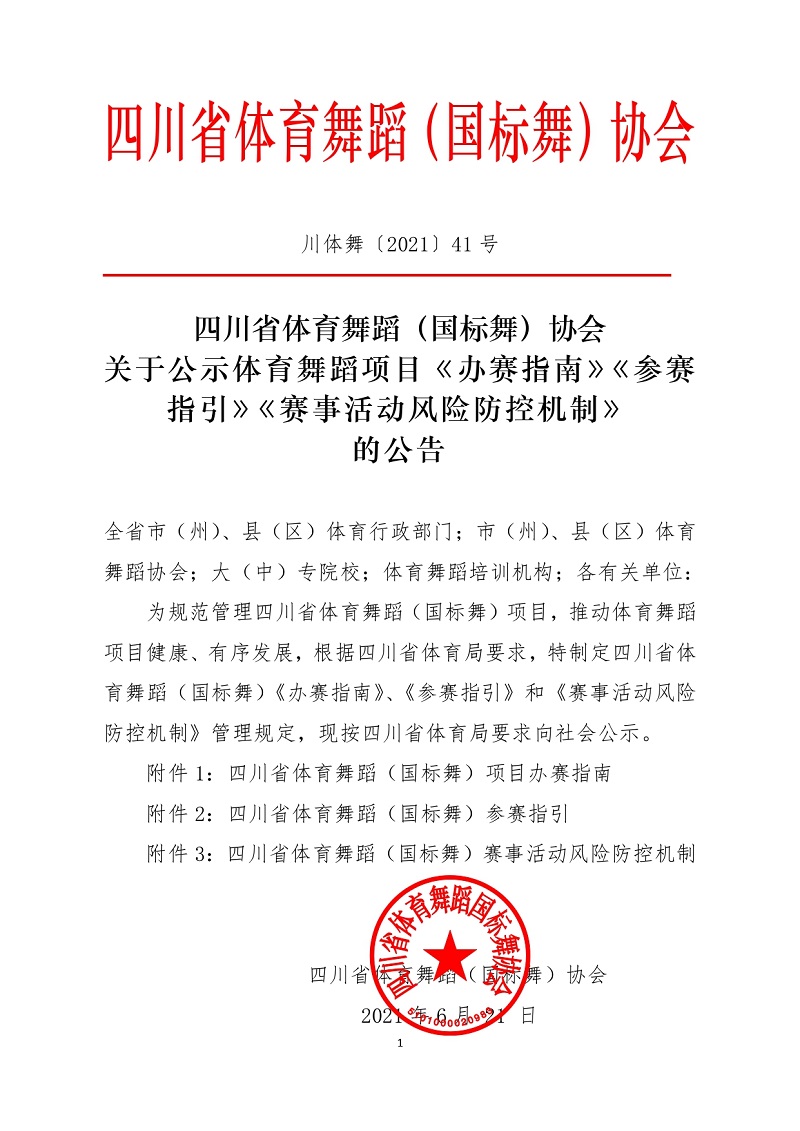 四川省体育舞蹈(国标舞)协会关于公示体育舞蹈项目《办赛指南》《参赛指引》《赛事活动风险防控机制》的公告