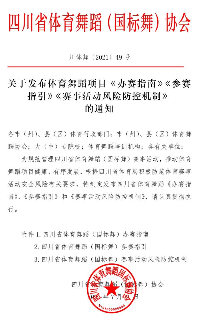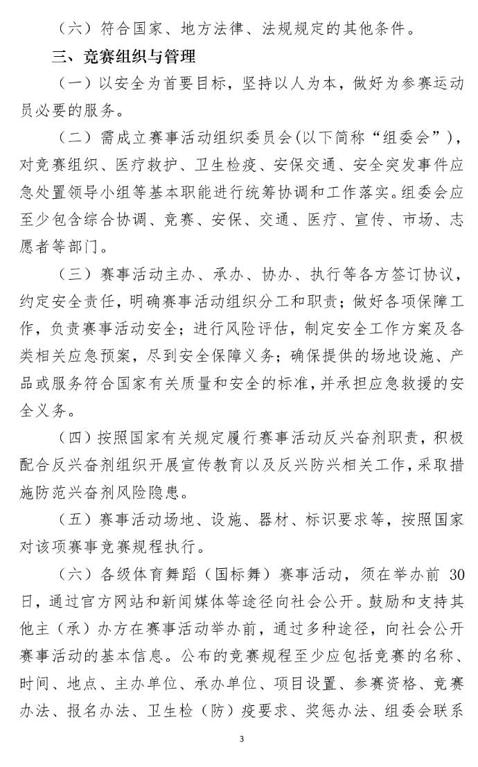 关于发布体育舞蹈项目《办赛指南》《参赛指引》《赛事活动风险防控机制》的通知